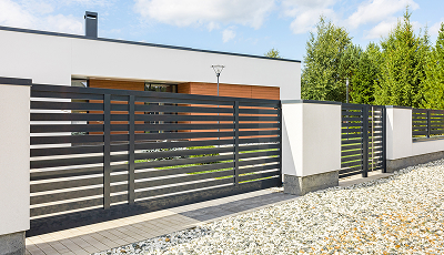 Откатные ворота выглядят современно, легко автоматизируются и не требуют особого ухода.